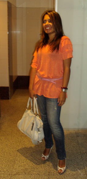 No look, foco na blusa laranja. Adoro essa cor sem contar que todo mundo fala prá eu abusar dessa cor por combinar muito com o meu tom de pele.